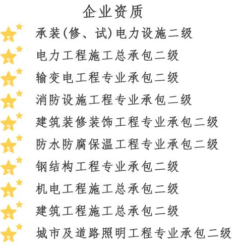 金楓電力集團(tuán)有限公司,成立于2015年5月28日,注冊(cè)資金6060萬(wàn)元,是一家專業(yè)從事電力工程施工的集團(tuán)化公司。公司經(jīng)營(yíng)范圍包括:電氣安裝服務(wù);建設(shè)工程施工;輸電、供電、受電電力設(shè)施的安裝、維修和試驗(yàn);測(cè)繪服務(wù);建筑勞務(wù)分包;建筑工程設(shè)計(jì);發(fā)電機(jī)及發(fā)電機(jī)組制造;建筑工程機(jī)械與設(shè)備租賃;工業(yè)工程設(shè)計(jì)服務(wù);技術(shù)服務(wù)、技術(shù)開發(fā)、技術(shù)咨詢、技術(shù)交流、技術(shù)轉(zhuǎn)讓、技術(shù)推廣等。公司持有國(guó)家能源局頒發(fā)的承裝(修、試)電力設(shè)施許可證,承裝類二級(jí)、承修類二級(jí)、承試類二級(jí)資質(zhì);電力工程施工總承包二級(jí)資質(zhì);輸變電工程專業(yè)承包二級(jí)資質(zhì);建筑裝修裝飾工程專業(yè)承包二級(jí)資質(zhì);消防設(shè)施工程專業(yè)承包二級(jí)資質(zhì);防水防腐保溫工程專業(yè)承包二級(jí)資質(zhì);施工勞務(wù)資質(zhì);機(jī)電工程施工總承包二級(jí);建筑工程施工總承包二級(jí);城市及道路照明工程專業(yè)承包二級(jí);鋼結(jié)構(gòu)工程專業(yè)承包二級(jí)資質(zhì);公司已通過(guò)質(zhì)量管理體系認(rèn)證、環(huán)境管理體系認(rèn)證及職業(yè)健康安全管理體系認(rèn)證。并獲得省級(jí)信用評(píng)價(jià)AAA證書;連續(xù)多年納稅信用評(píng)價(jià)A級(jí)。